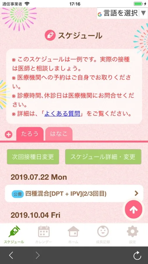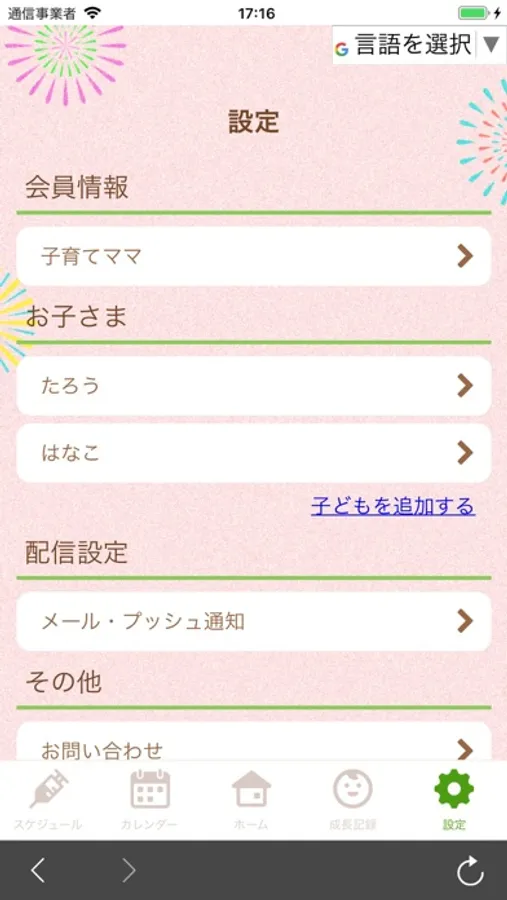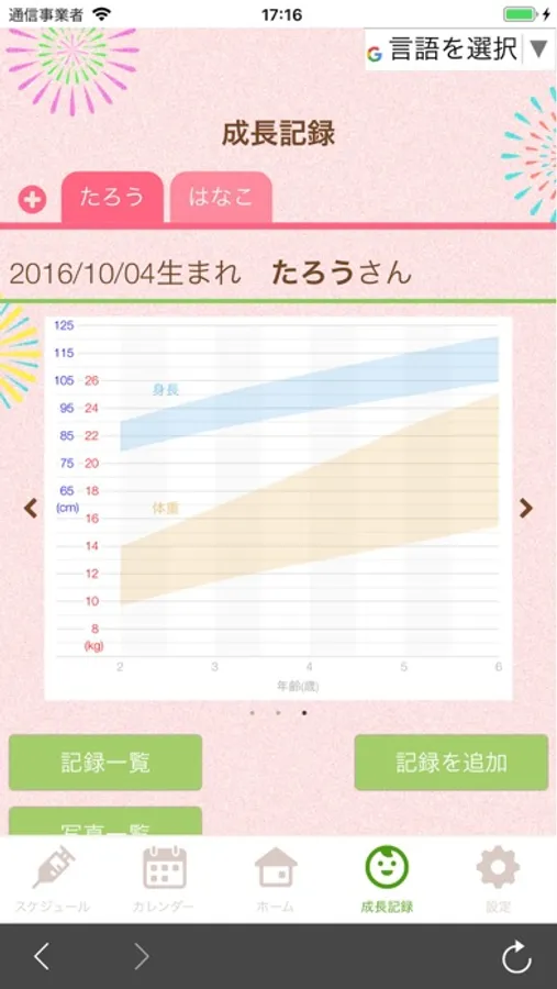 子どもの身長や体重を入力することで、成長がグラフで一目でわかる機能もあります。