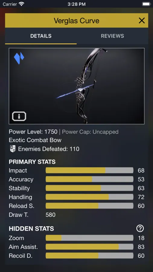 Rate and review every weapon and armor. Found a new weapon or armor and want to know if it is good or bad? Just check its rating and reviews by other guardians and decide for yourself.
