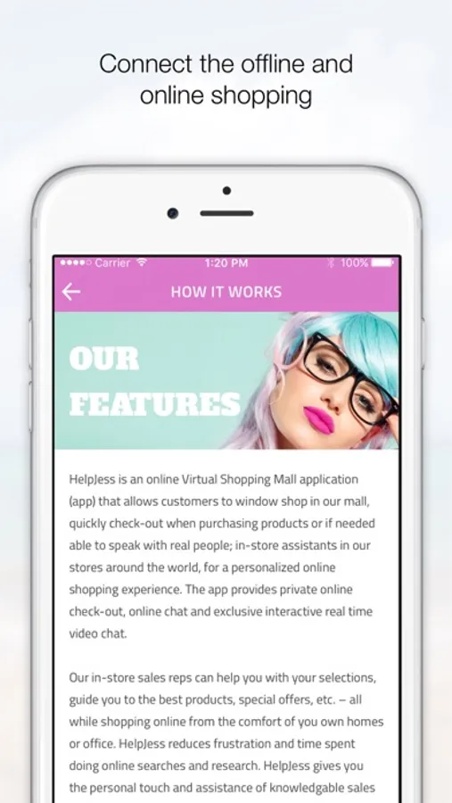 HelpJess is a Virtual Shopping Mall application (app) that allows customers to window shop in our global mall, to pre order in purchasing products, to then able to set up appointments with the stores individually or as a group to then have a live integrated online to offline shop video call to stores around the world, as actually being in the store for a VIP personalized shopping experience from anywhere worldwide.