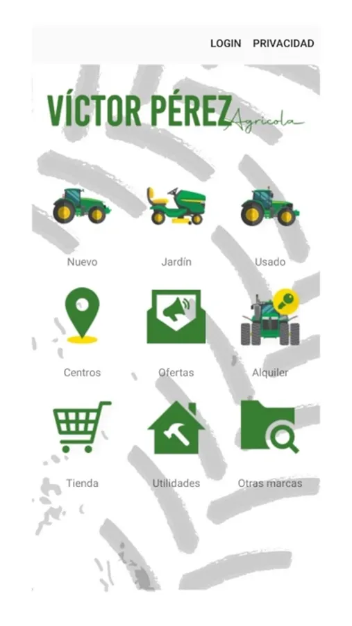 Esta app es una herramienta para los cliente de Víctor Pérez Agrícola, así com para todo aquel con interés en productos y maquinaria agrícola. Con ella podrán estar al corriente de todas las novedades, así como de ofertas, maquinaria de ocasión, etc..