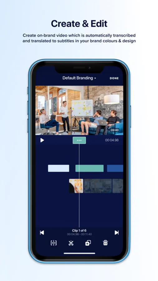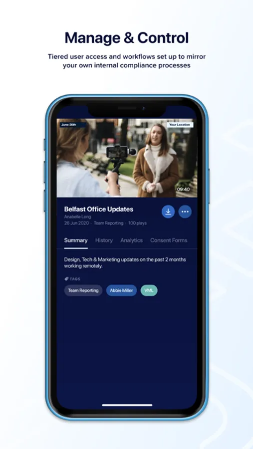 All of your teams - not just video production experts - can quickly and easily capture production quality video which is automatically enhanced with your approved branding, text captions, wipes and infographics. Utilising VML Technology's patented player technology, branding can be also be switched in under a second and automated subtitles applied.