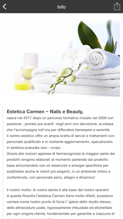 Grazie alle nozioni apprese di farmacognosia la maggior parte dei prodotti vengono elaborati al momento partendo dal prodotto base arricchendolo con oli essenziali e sinergie specifiche per soddisfare anche le clienti più esigenti, in un ambiente intimo e confortevole, con personale serio, professionale, allegro e dinamico!