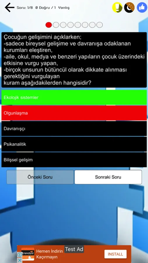 Yanlış yaptıklarını daha sonra tekrar çözebileceğiniz bölüm mevcuttur.