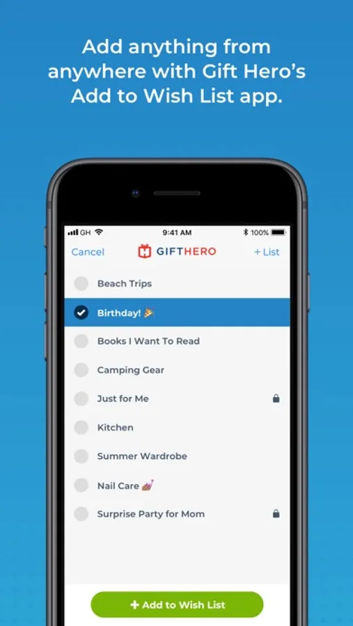 The Gift Hero companion app lets you quickly add anything from your web browser to your Gift Hero wish lists. It’s like creating a registry for all life’s gift-giving occasions, only easier and in one convenient spot. Start wish-listing now!