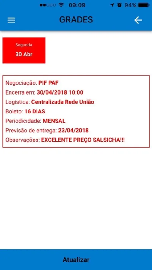 Aplicativo para fechamento de grades, pedidos em estoque, hortifruti, contratos, enquetes e agendamentos de carga.
