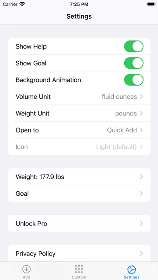 Fluidics includes a single subscription, just $0.99 per year, to unlock advanced features like goal customization and an alternate version of the widget. The subscription is charged to your iTunes Account at the time of purchase, and will be automatically renewed once a year (within 24 hours of the 1-year line) unless you cancel automatic renewal (through your iTunes Account Settings) more than 24 hours in advance. You can manage your subscription (to this app and others!) by going to your iTunes Account Settings.