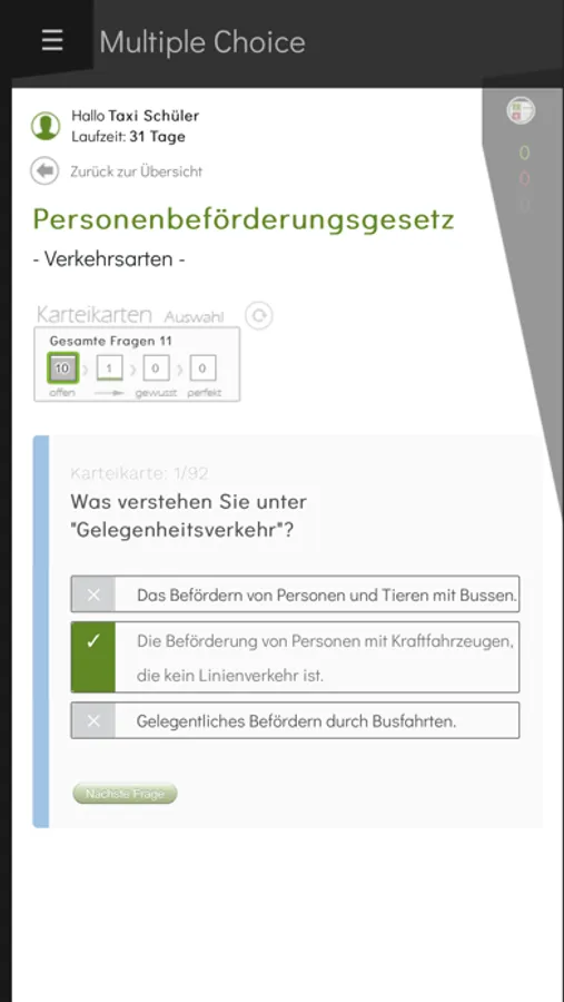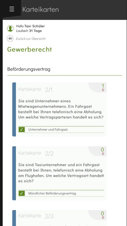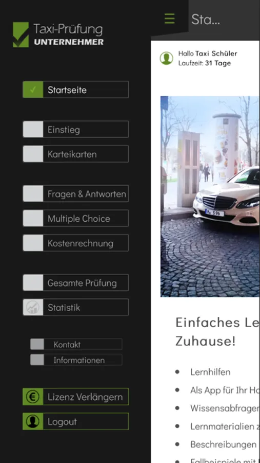 Das erfolgreiche Taxi-Prüfung-Lernprogramm unterstützt Sie beim Lernen für die Unternehmerprüfung.