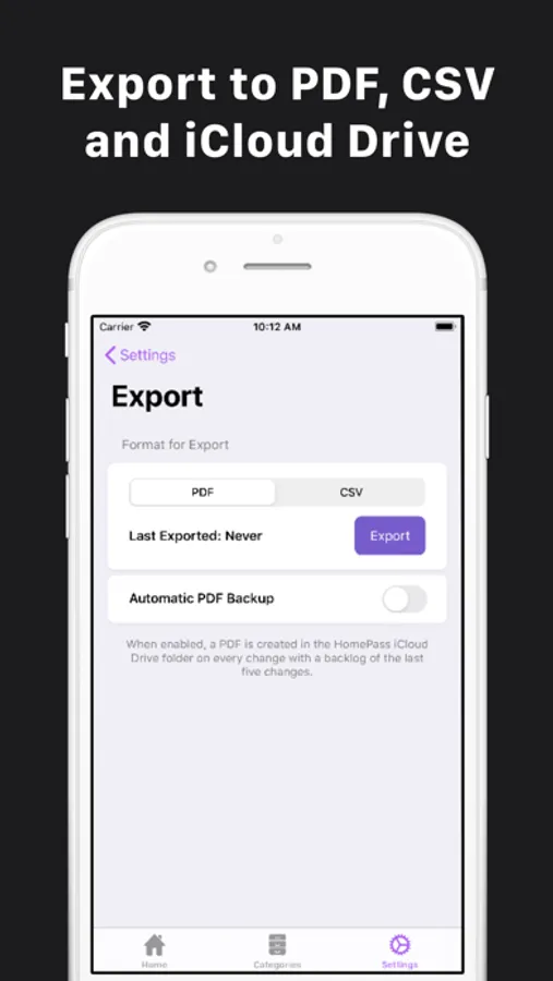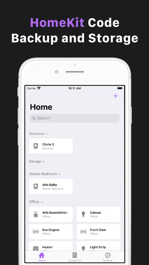 Export to your HomeKit codes to a PDF ready for printing, sharing or storage on iCloud Drive. Automatic PDF backup allows you to upload a PDF on every change to iCloud Drive. This provides you a piece of mind with multiple backups of your HomeKit codes