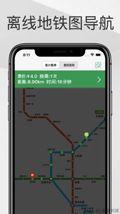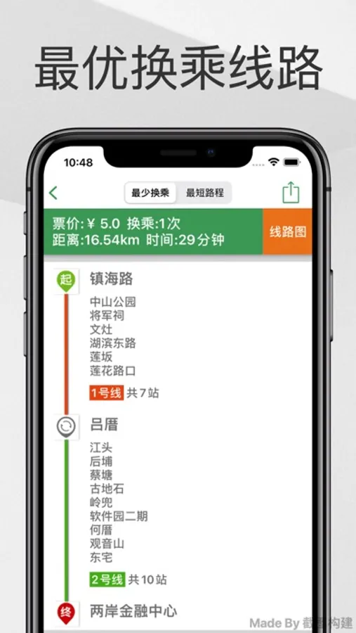 选择出发,到达,即可获得多种换乘方案。包含:路线,时间,票价,距离。