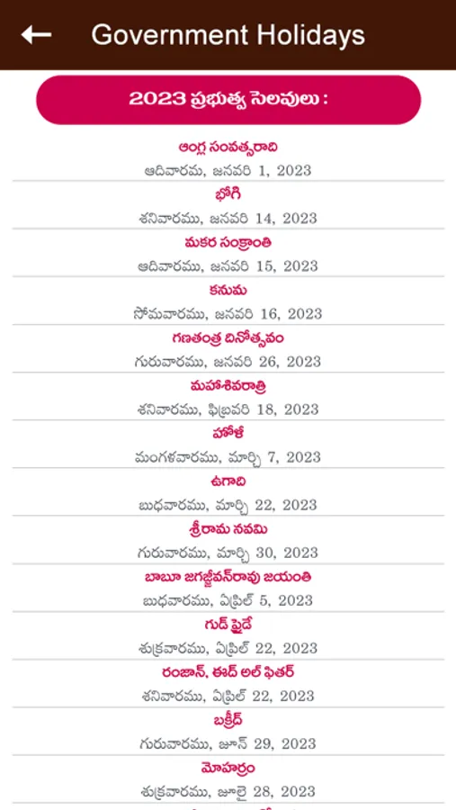 - This app intends to bring you information on Indian Calendar, Bharath Holidays & Indian Festivals are available in English, Hindi, Telugu