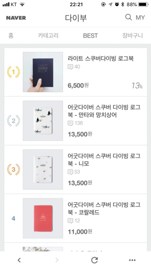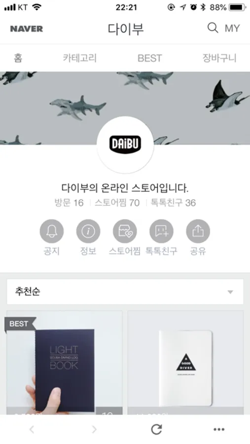 로그북과 주얼리 등 스쿠버 다이빙 관련 제품을 만나보실 수 있습니다.