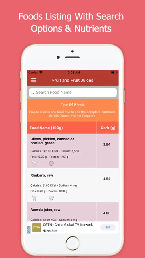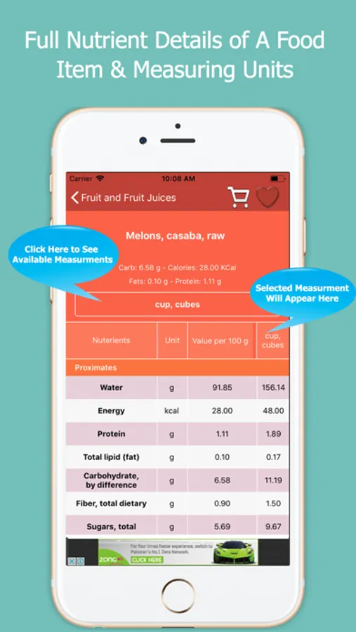 1. Select any food item on foods listing page and it will take you to the detailed view of food and it’s complete nutrients detail.