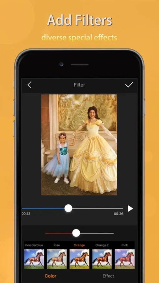 + Adjust the color and effect of the video with dozens of filters