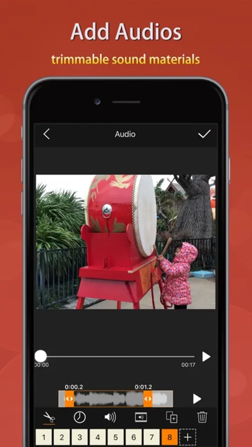 + Add special audios into the video with over 200 sound effects