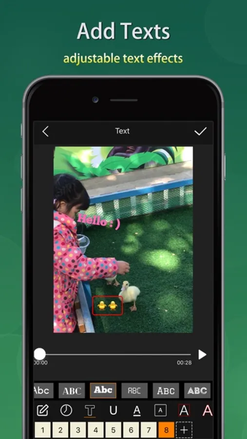 + Add some text into the video with rich text effects