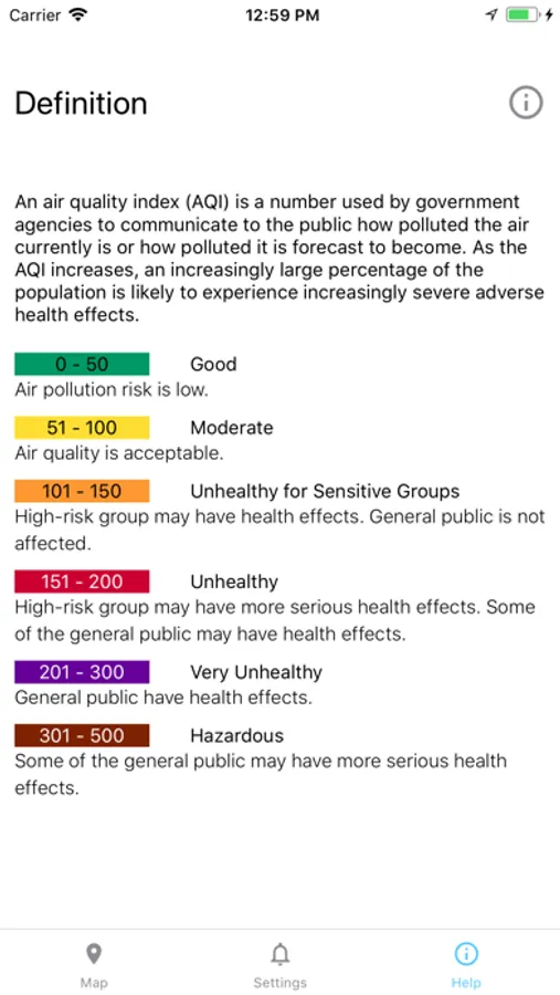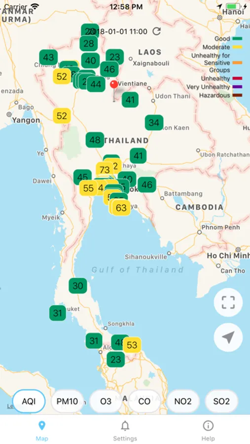 We provide realtime AQI as well as the pollutant concentration of NO2, O3, SO2, CO and PM10.