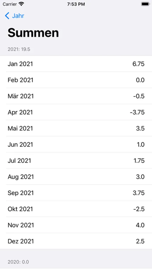Und bei den Summen kann man nachsehen, wo man gerade steht.