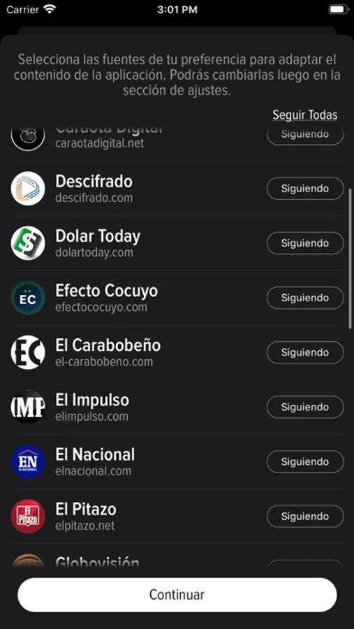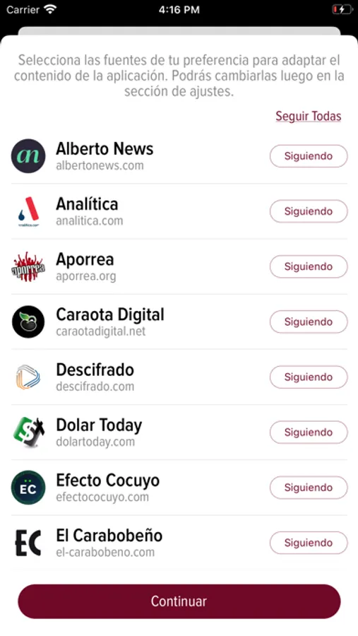 Selecciona las fuentes de noticias de tu preferencia de una lista en constante crecimiento. Actualmente se incluyen: