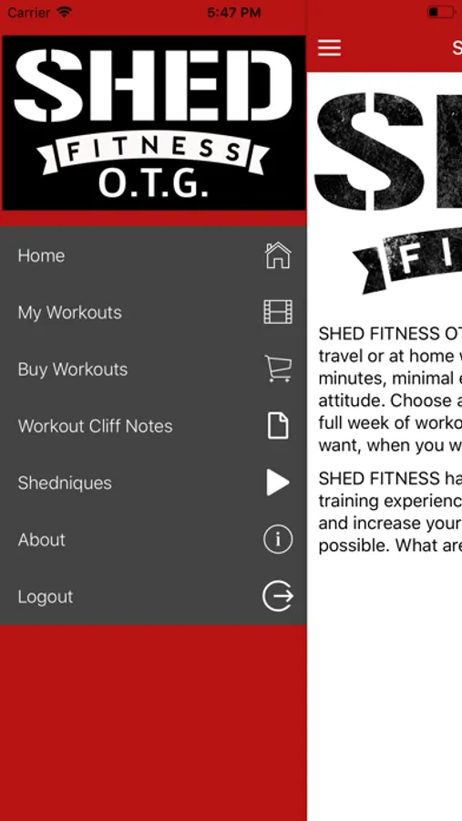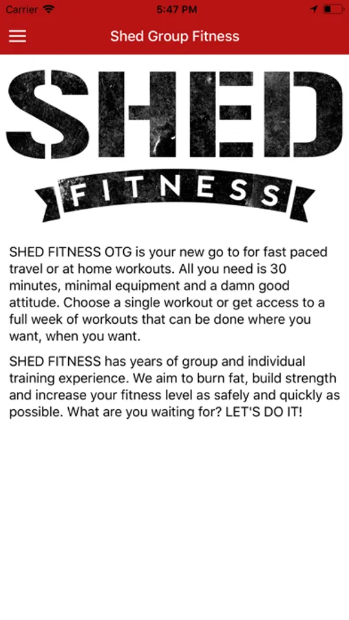 SHED OTG will provide you high intensity workouts and examples of how to perform each movement. Shed has created OTG to be an "at-home" or a "traveler's" favorite workout companion.