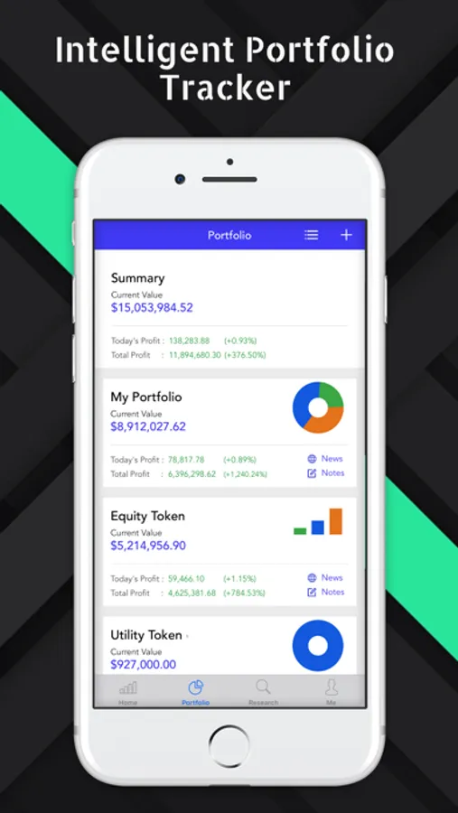 Super fast and easy-to-setup portfolios. Allow management of multiple portfolios and tracking of the value, performance, profit, loss, and changes in real time with tons of powerful tools and charts. You can also get very personal with the portfolios, e.g. take your own research notes, customize background image for each portfolio, easily adjust the contents and display order for the holding positions, cloud-based platform to sync your portfolios among multiple devices, and more.