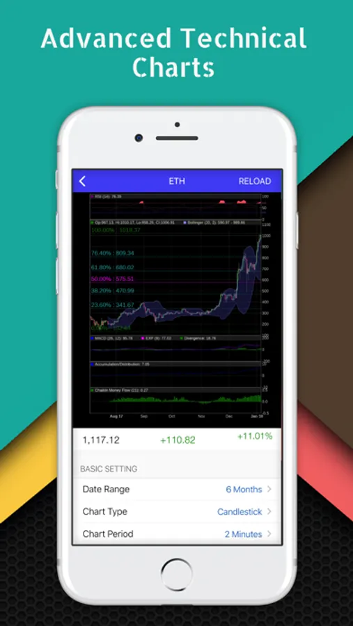 Besides advanced quotes for crypto currencies, coins, tokens, you can view high-resolution Advanced Charts in details by playing with hundreds of TA indicators with adjustable parameters, automatic Fibonacci retracement lines, moving averages, price bands, pivot points, overlay settings, and so on.