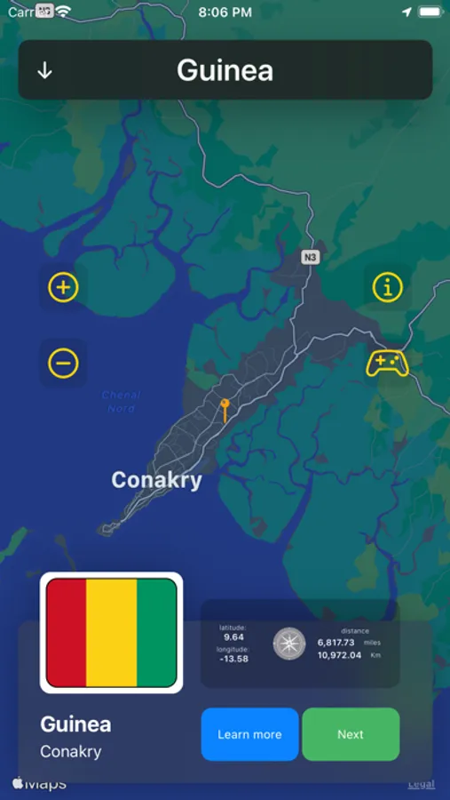 - the map shows your position and at the same time the capitals of all nations;