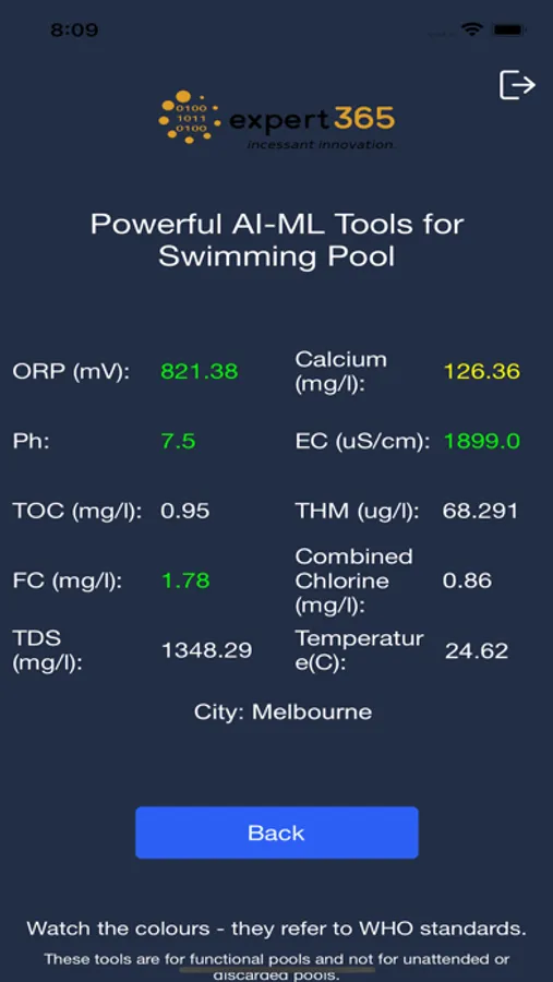 Important features of swimming pool health/aesthetic parameters via AQUA365 monitor online