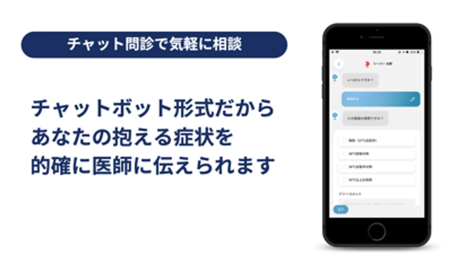 ・チャットボット機能で気軽に医師に相談。