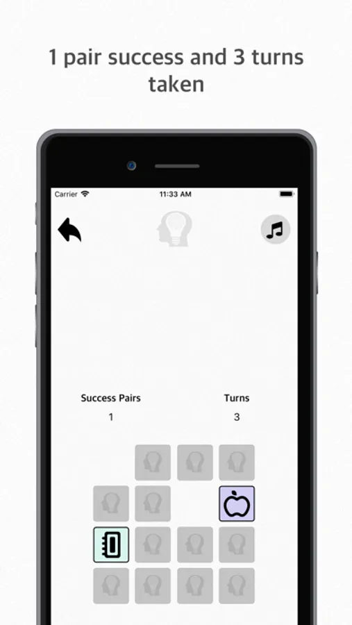 The game will count your total turns and your success match. You can also check your last 5 high scores.