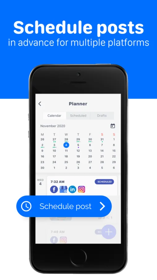 • Publish posts, images, videos, and Reels to multiple channels with one app