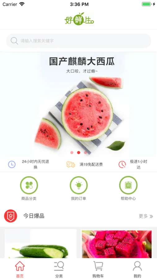 好鲜生,集采购、平台打造、配送于一体的综合网络运营商,主要经营生鲜水果、零食等综合食品,我们的服务理念是让客户用最方便的方式吃上最优质的美食鲜果。市场环境中,生鲜行业还不太成熟,人们吃不上新鲜果子和新鲜食材, 我们好鲜生致力奋斗并将填补这一市场的空白,让人们的生活更优质方便。
