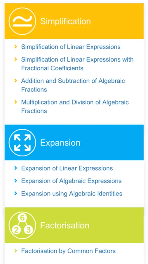 Simplification, Expansion, Factorisation of Algebraic Expressions