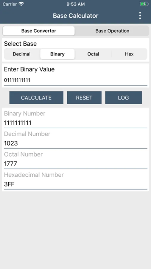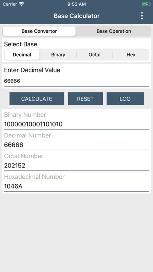 Base Converter & Calculator is a useful app to do the base conversion and perform basic maths operation. It works on Binary (Bin), Octal (Oct), Decimal (Dec), Hexadecimal (Hex). Base are 2,8,10,16.