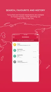 - A new destination can be searched by keyword or address and can be saved for future reminding.