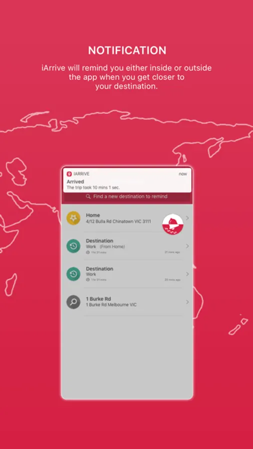 - Several reminding notifications will be shown one by one if you put iArrive in the background and get closer to the destination.