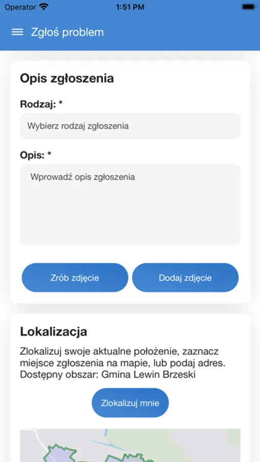 Aplikacja w bardzo prosty sposób pozwala na zgłaszanie różnych problemów czy usterek.