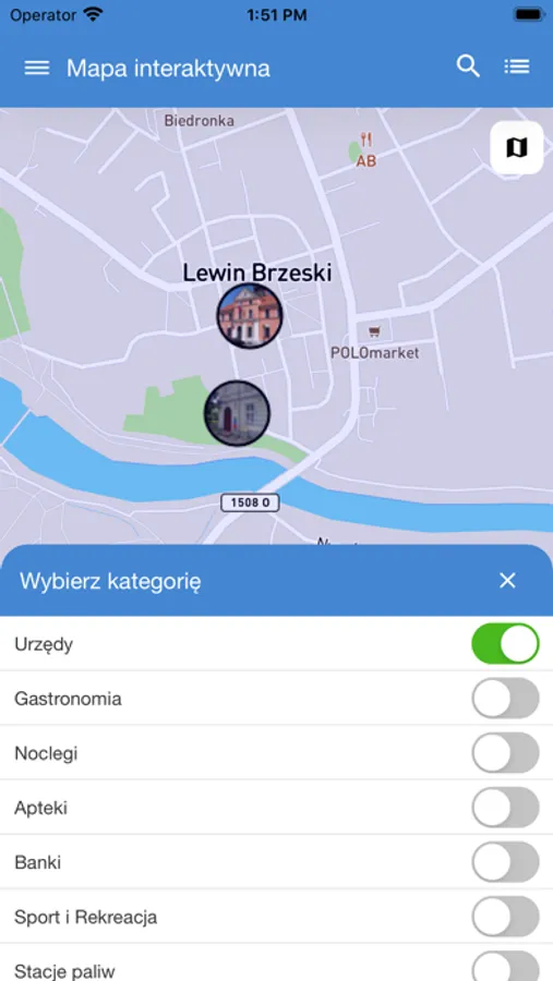 Obiekty na interaktywnej mapie są grupowane w kategoriach i podkategoriach, posiada dane opisowe i kontaktowe oraz multimedialne. Dodatkową funkcją jest uruchomienie funkcji nawigacji prowadzącej do wybranego obiektu.