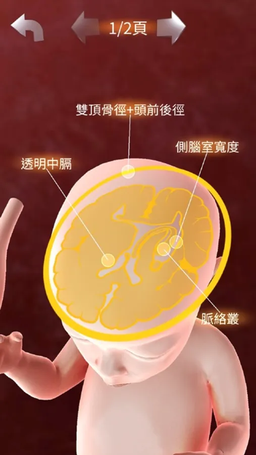 重要的大部位如腦部和胸部,還特別分了三頁的詳細器官示意圖,透過點擊上方的左右分按鈕,可以更清楚瞭解照片的實際位置。