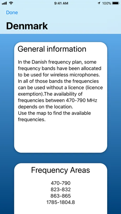 Simply swipe across the world, tap on the country's flag and presto; a full overview of the rules, regulations and (most importantly) frequencies, is at your fingertips.