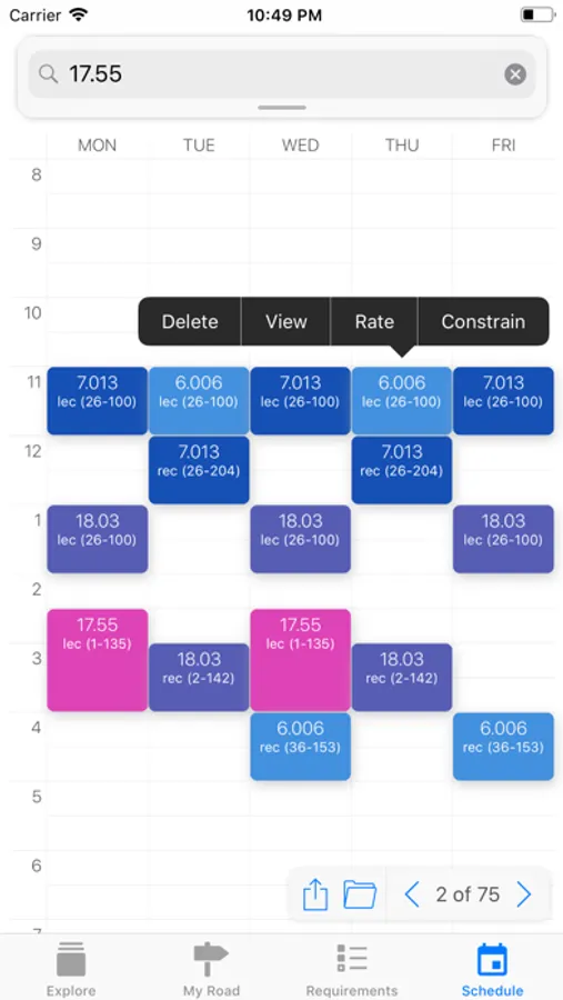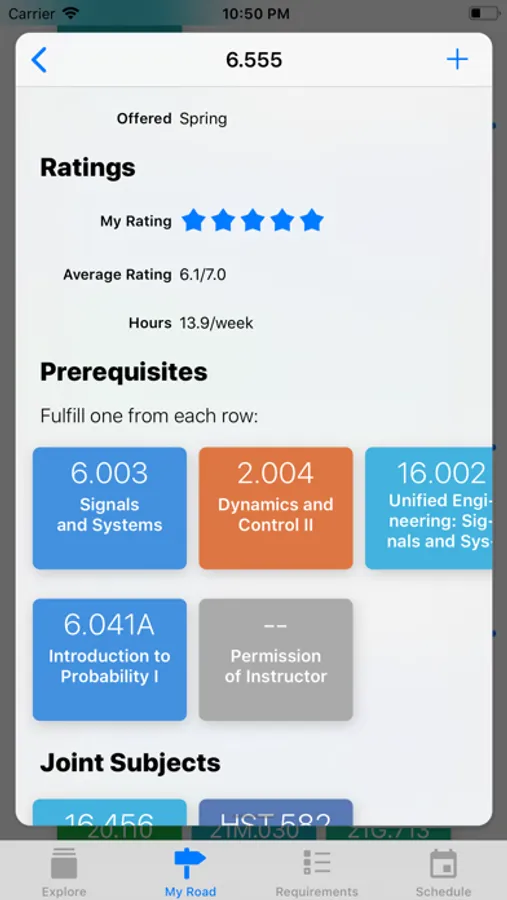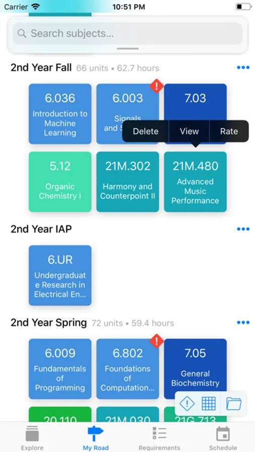 FireRoad is the new best way to plan your path through MIT. Plan for both the upcoming semester and the years ahead, all in one place. You can view up-to-date course requirements and add them directly to your roads with a tap, and browse subjects by any criteria. FireRoad even learns from your selections to recommend other subjects you might be interested in!