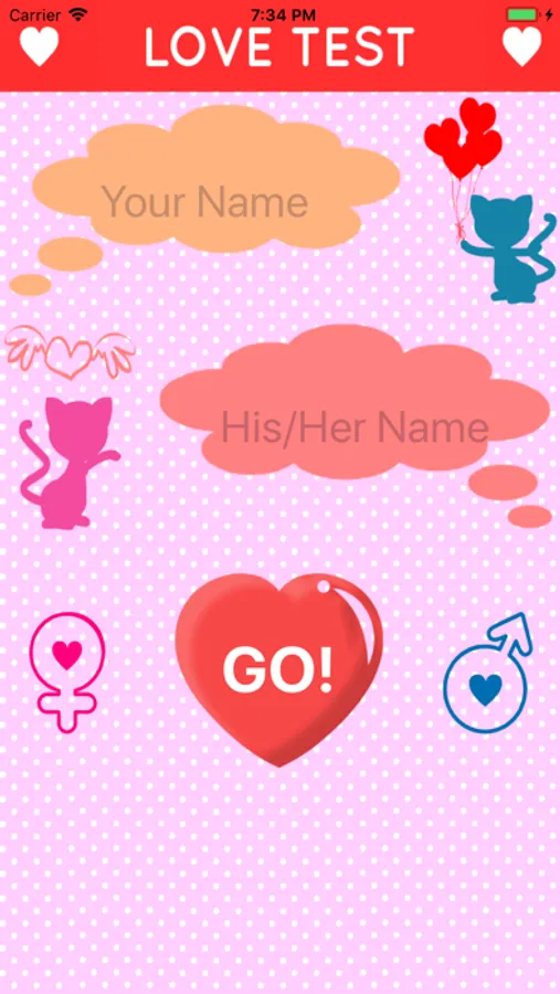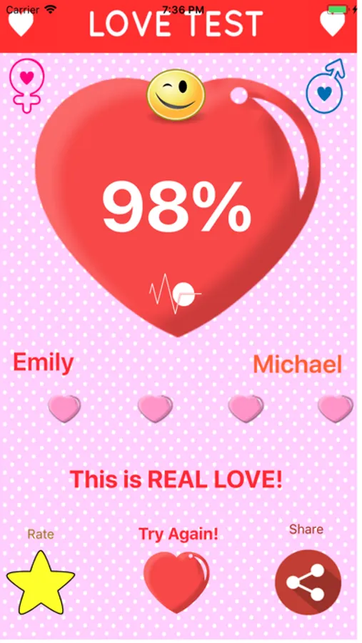 The "LOVE TEST"' checks with a highly complex algorithm, if two persons are meant to be together by some options: