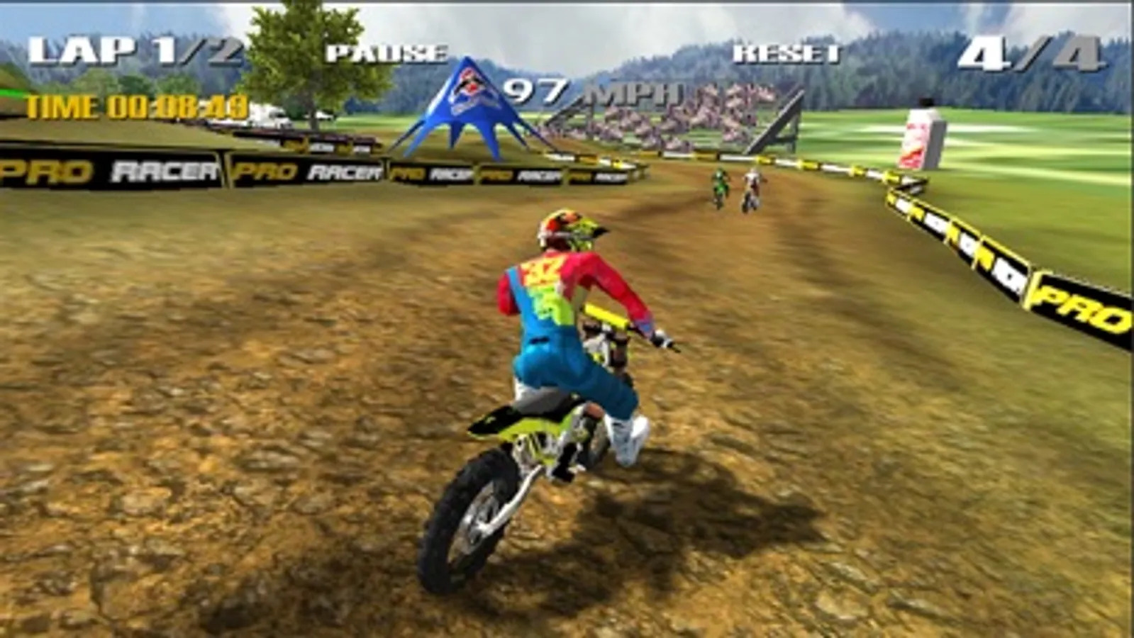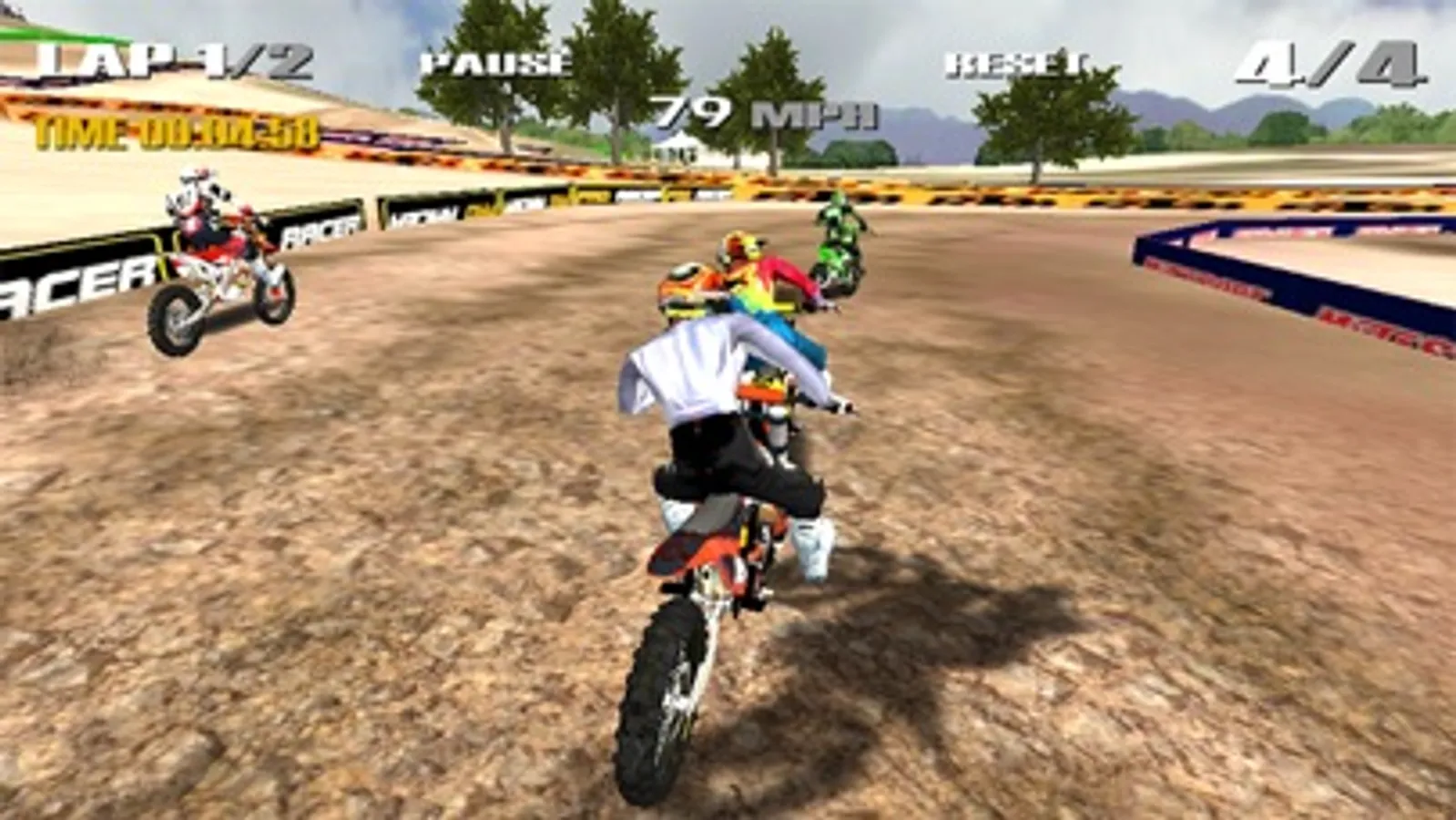 Tracks based on real Motocross courses. Includes Tricks, Bike customization, Arena Cross and much more. 10 Levels of challenge based riding and stunts. 10 levels of track racing against AI rivals. Modes include: Single Player Campaign, Time Attack against your best runs, with online leader boards. Also real time multiplayer with up to 4 friends or randoms.