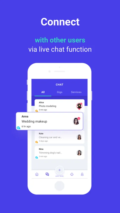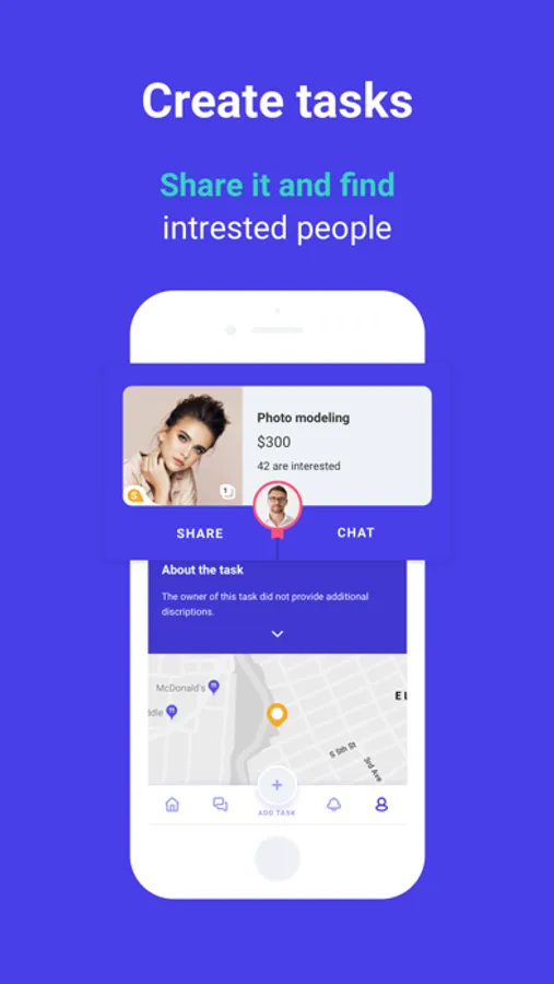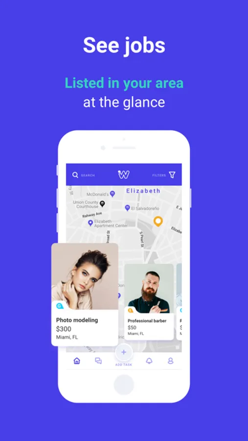 Simply download the app, sign in, and open the map. Here you can review all of the available odd jobs and freelance tasks within your region. Click on the map marker, start a conversation, and secure your income all-in-one. Do it at your convenience and according to your schedule.