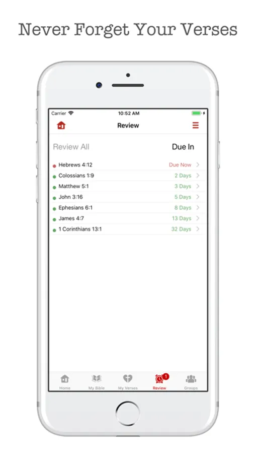 • Our Smart Review System reminds you to review your verses on an automated schedule.