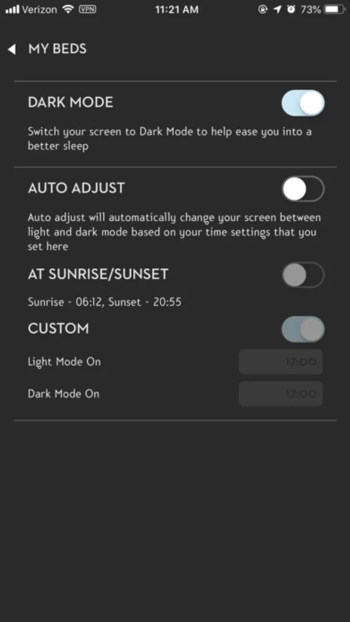 • Updated screen settings include dark mode and auto adjust with sunrise-sunset option