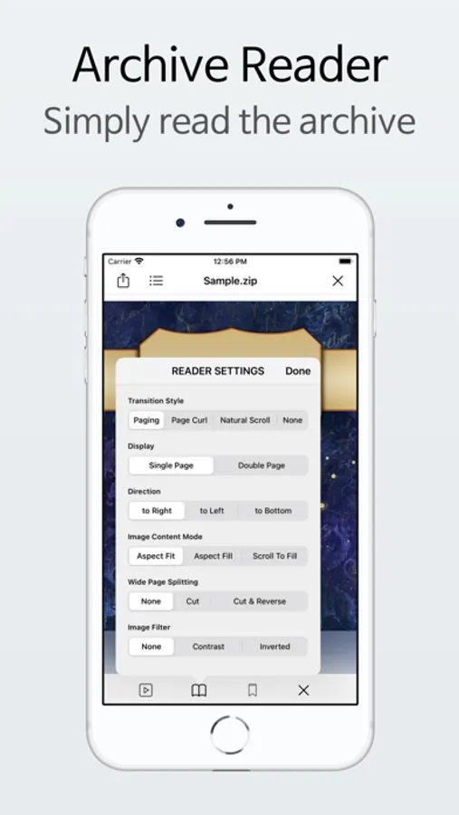 • Supported compressed files: ZIP, RAR, CBZ, and folders are also available.