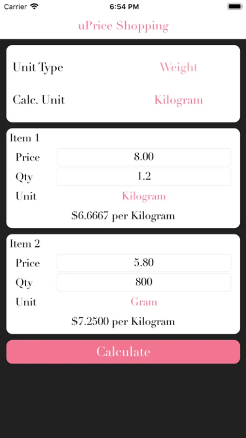 - smart unit conversion to accommodate different unit price comparison