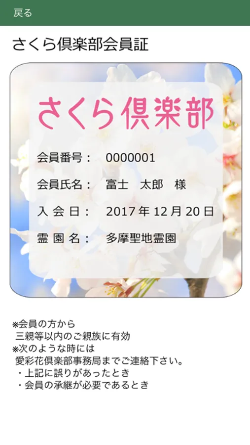 さくら倶楽部の会員証が表示されます。