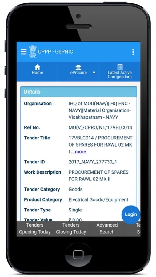 This app provides details of eTenders published by various entities of Government of India through the Central Public Procurement Portal. Basic and important details of tenders are made accessible through the app and access to complete tender information is free. The users may also visit https://eprocure.gov.in for additional details.