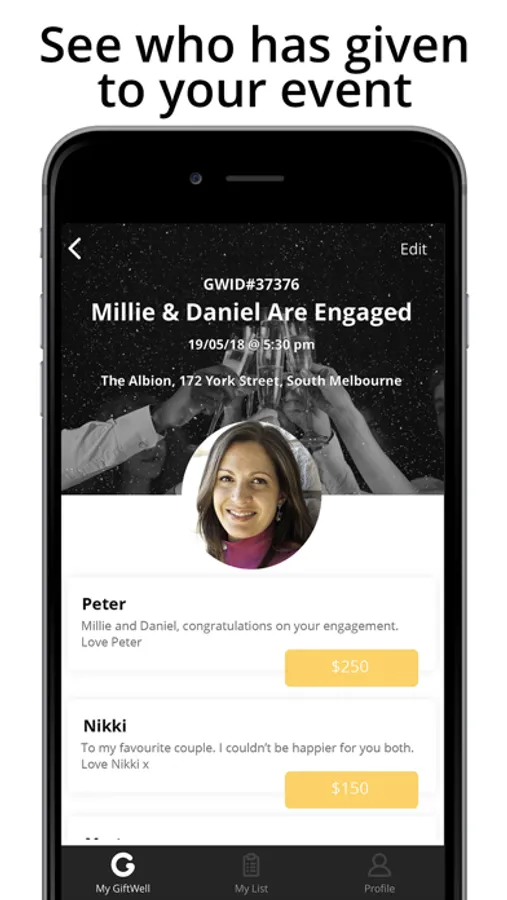 Not only is it completely electronic, GiftWell also enables you to track the amounts each person has given and automatically transfers the funds to your account. Complete with inbuilt gift messaging from your friends.